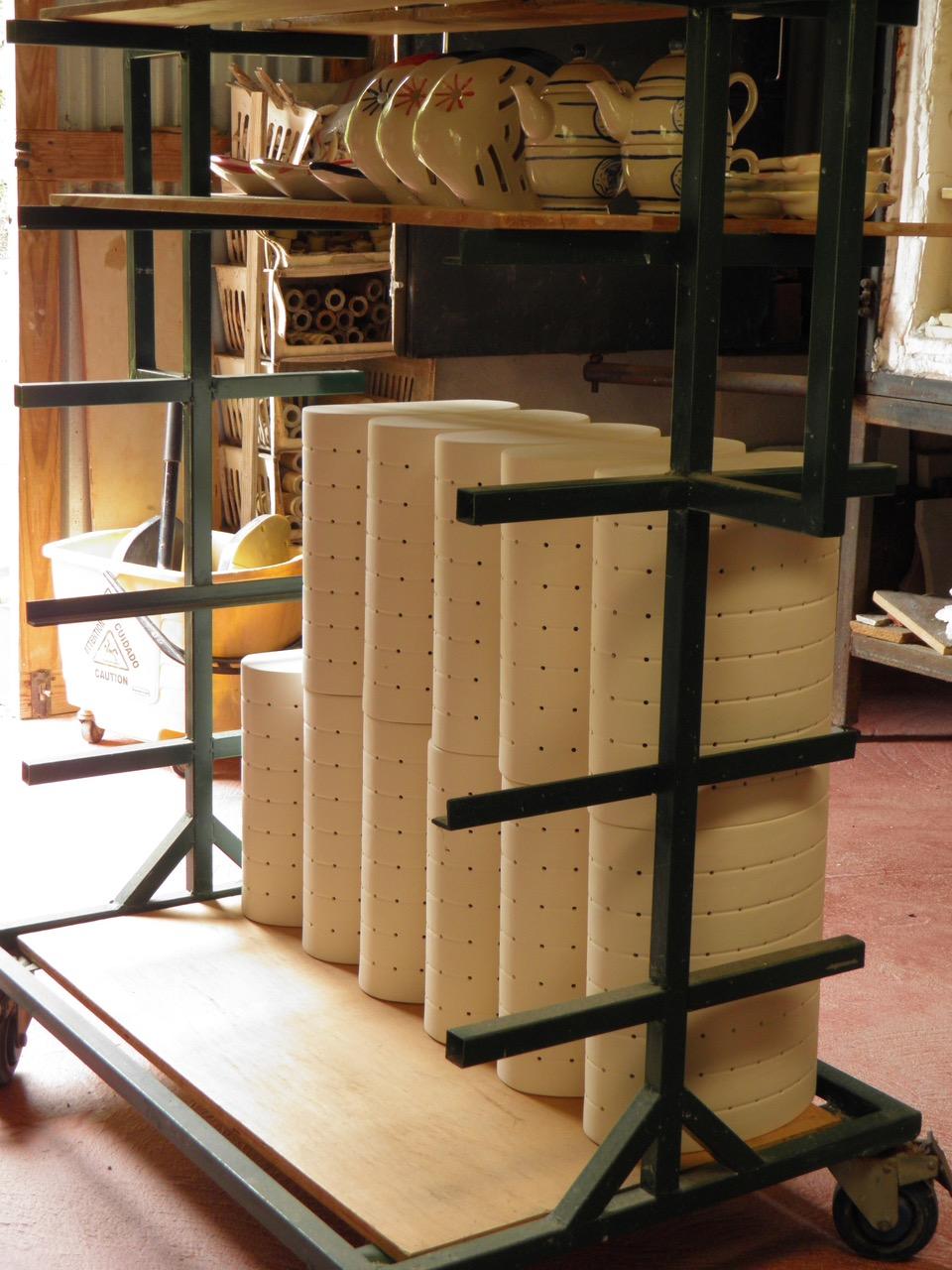 All Margie Hunt lights are individually hand made at our studio in Antigua. The white earthenware clay we use produces a classic off-white bisque finish. However, this bisque surface readily accepts all types of treatments.